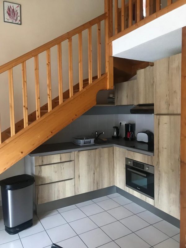 - 1 mezzanine : 3 lits simples, un point d’eau, des placards sous comble, 1 vélux